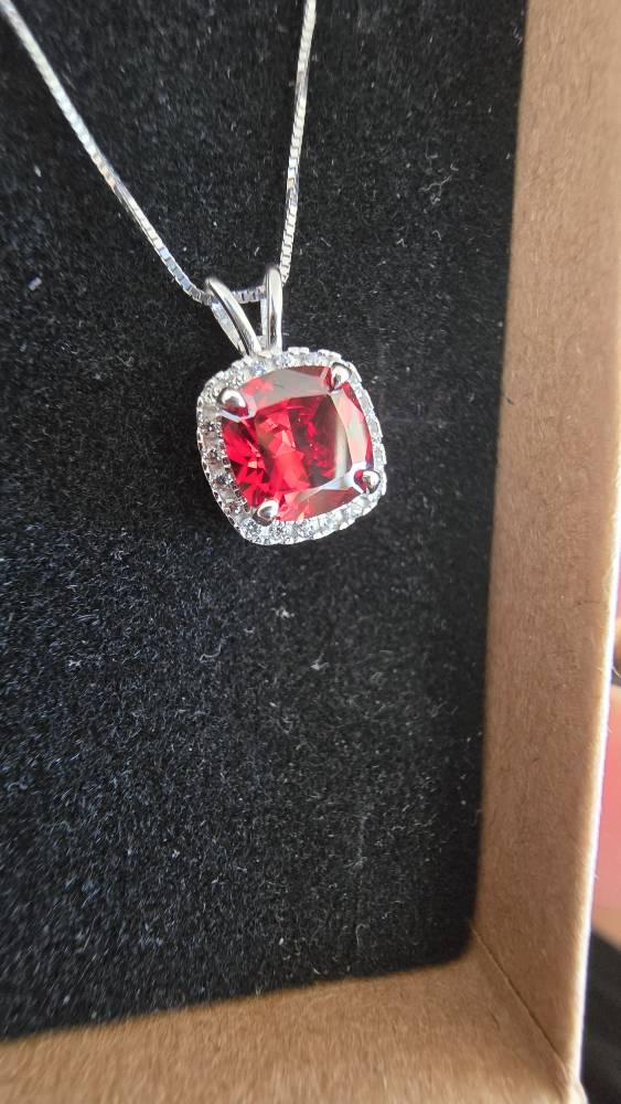 Cushion & Round Halo Created Diamond and Gemstones Pendant in 14K Real Gold. Luxurious and timeless, this stunning piece will add a touch of elegance to any outfit. A sparkly statement piece that is sure to be a great addition to any look. Finished in high polished finish that gives this pendant a stunning shiny look that lasts for many years.