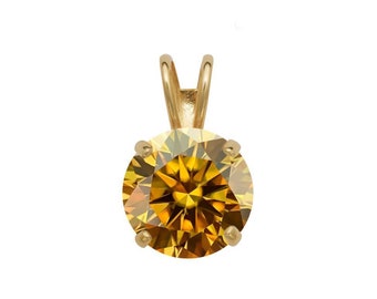 14k Gold Champagne Moissanite Solitaire Pendant, Brilliant Round cut Solitaire Charm 0.25-2.75ct, D VVS1 Clarity Gold Charm GIA certified